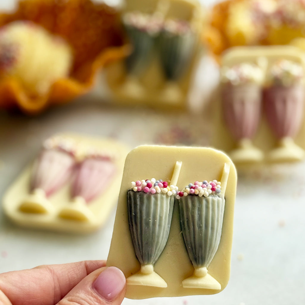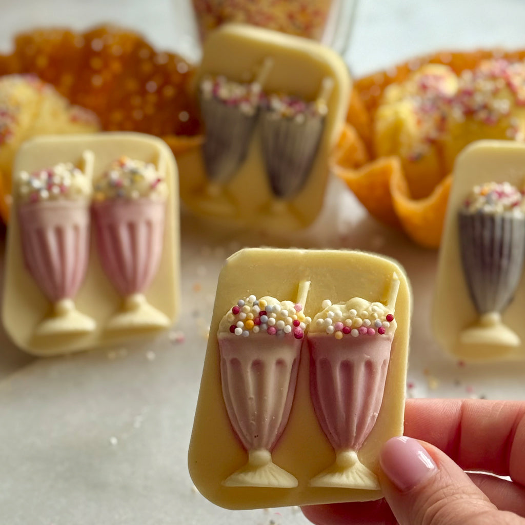White Chocolate contains: Cocoa Solids 28% minimum, Milk Solids 23% minimum.