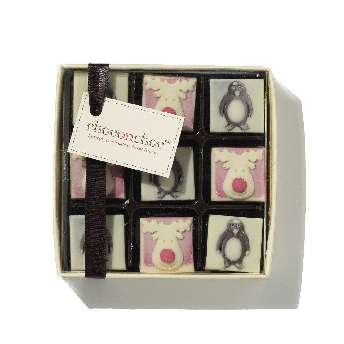 - Box contains nine chocolates