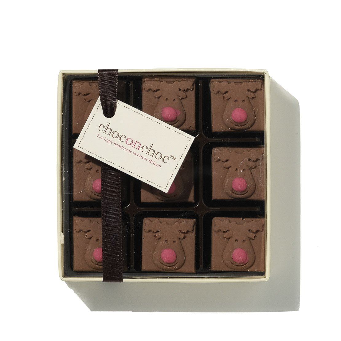 - Box contains 9 reindeer chocolates
