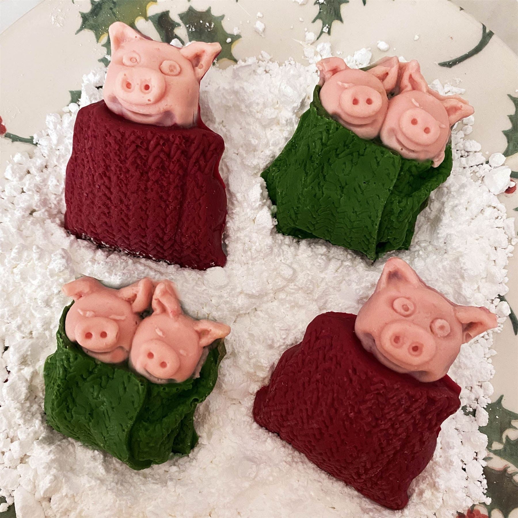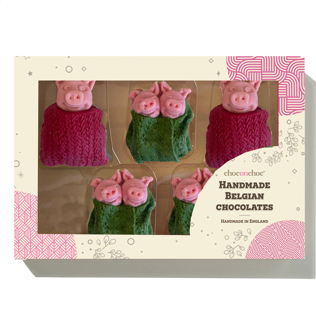 Ingredients: cocoa mass, sugar, cocoa butter, whole milk powder, emulsifier: soya lecithin, natural vanilla flavouring. Colour Carmine,E171 titanium dioxide,E133 Blue FCF E102 Tartrazine