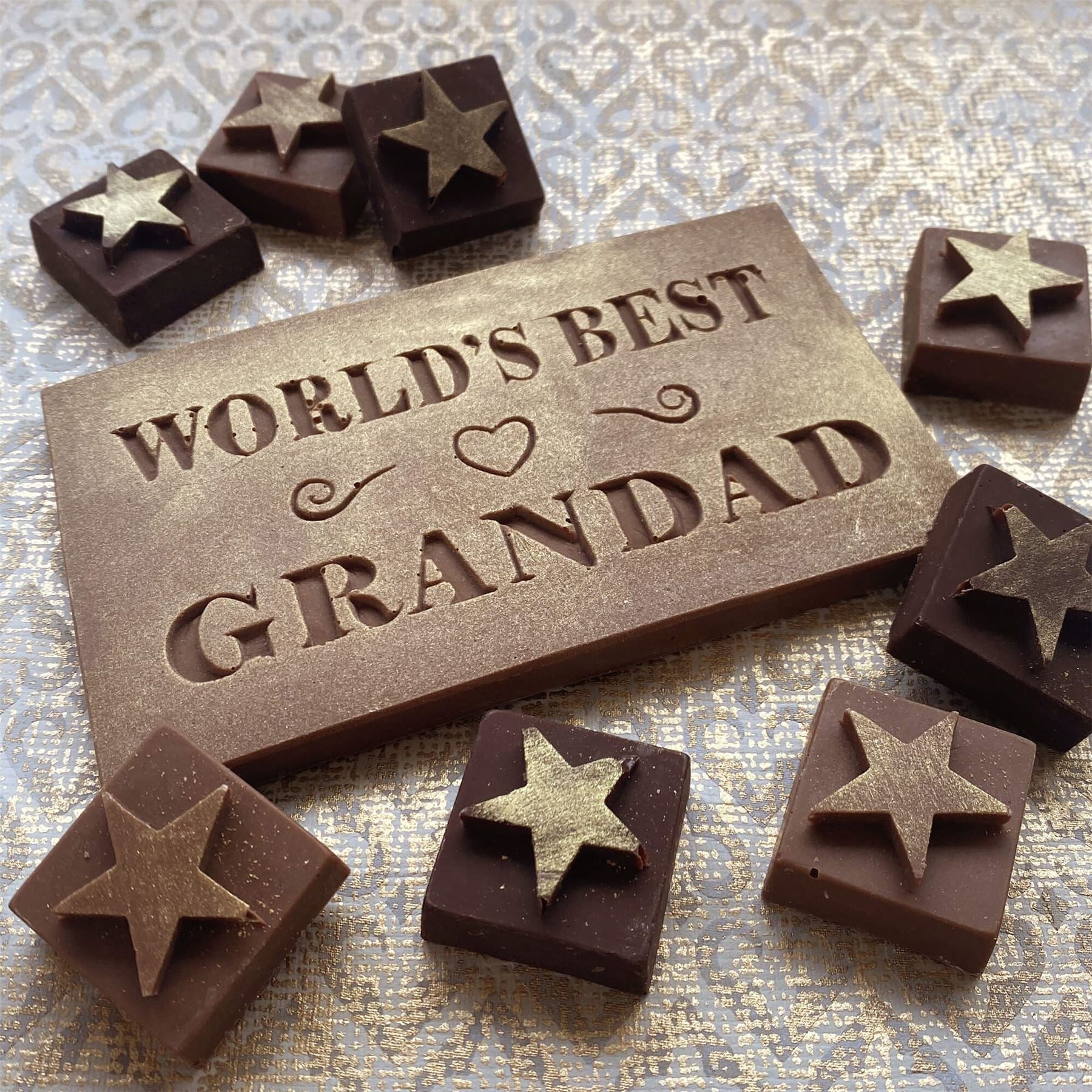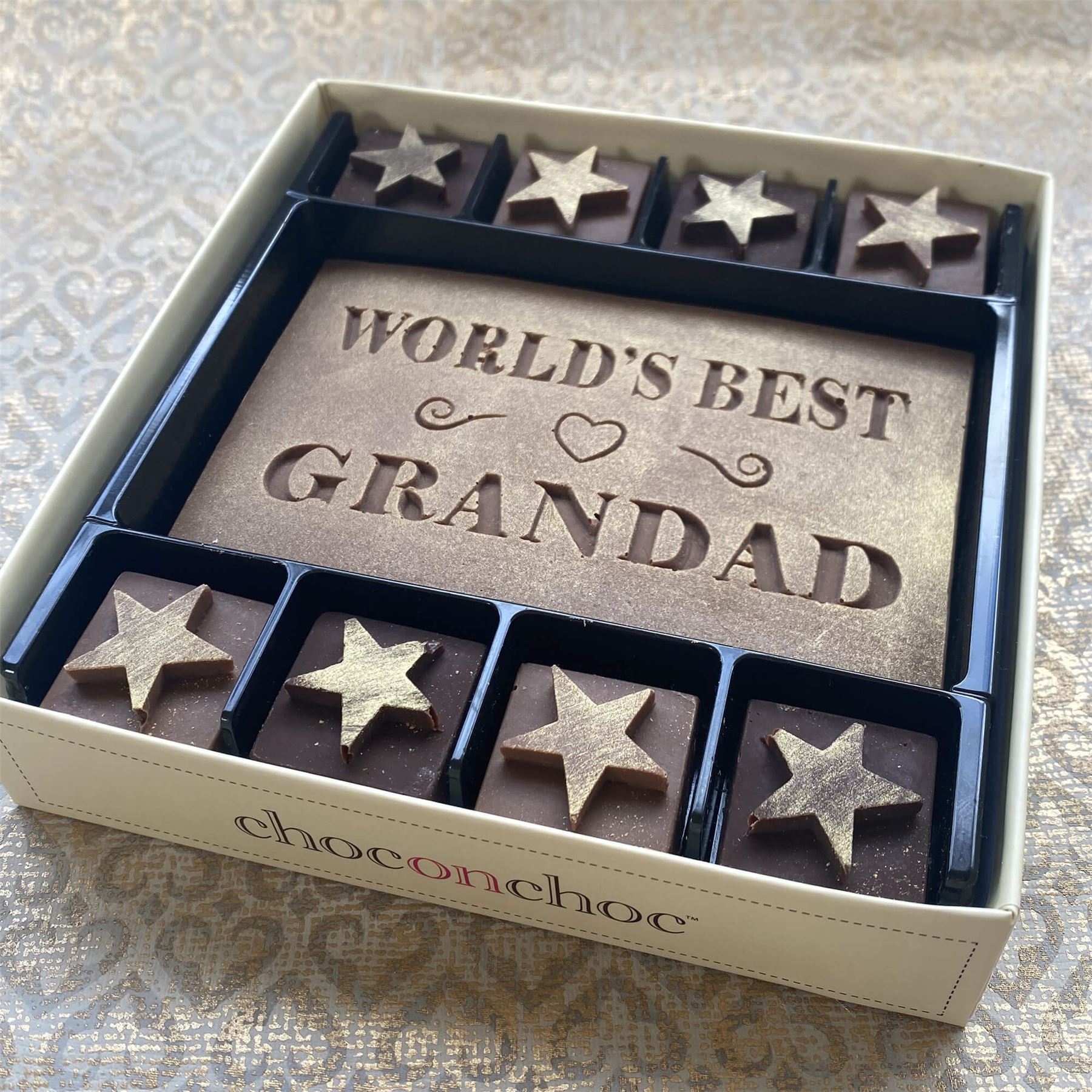 - Box contains one solid greatest grandad and 8 chocolate stars